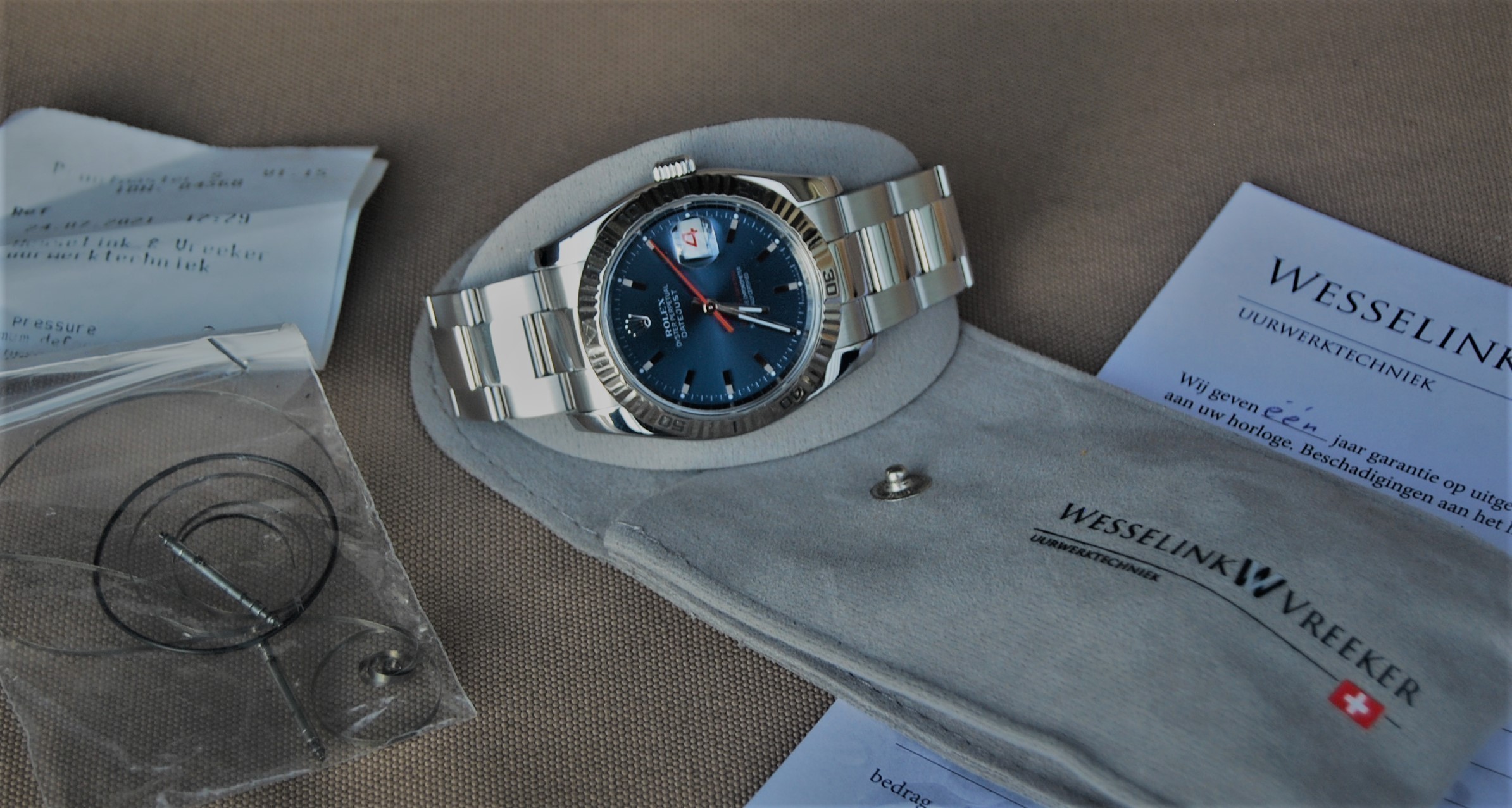 | | | | | | |  3 weken geleden een DJ Turn-O-Graph uit '08 voor een servicebeurt incl polijsten bij W&V (Alkmaar) ingeleverd. Gisteren opgehaald. Zeer tevreden: klokkie als nieuw, schappelijke prijs. Bij dezen...een pluim voor W&V! Trouwens, wat een prachtig horloge is de TOG, zou eigenlijk op 41mm moeten worden continued...