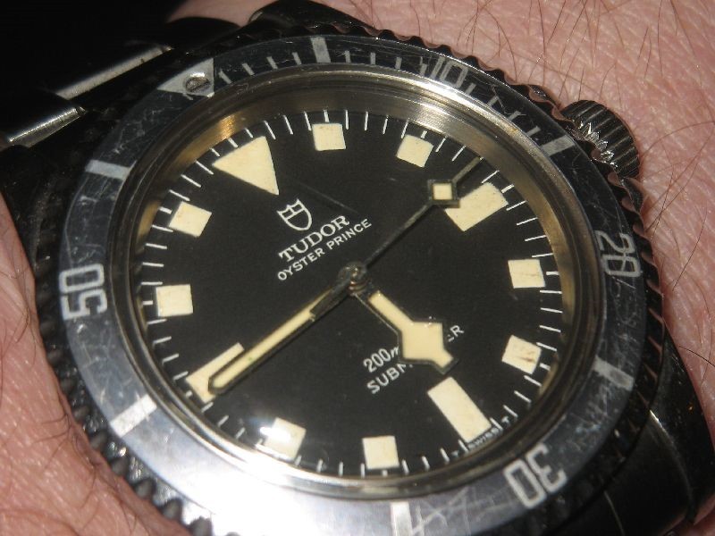 Speciaal voor de gelegenheid draag ik nu mijn Snowflake die echt heeft geleefd en die nog geheel in ongerestaureerde staat verkeerd dus met lekkere butsen, krassen en een lekkere faded bezel waarvan de parel waarschijnlijk weer ligt waar die oorspronkelijk vandaan komt.