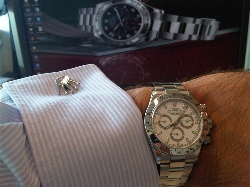 Quote: | Op donderdag 07 juli 2011 09:11 schreef Deeptona het volgende: Vandaag mijn Daytona in combinatie met mijn vorige week gescoorde manchetknopies. Staat best leuk....al zeg ik het zelf
