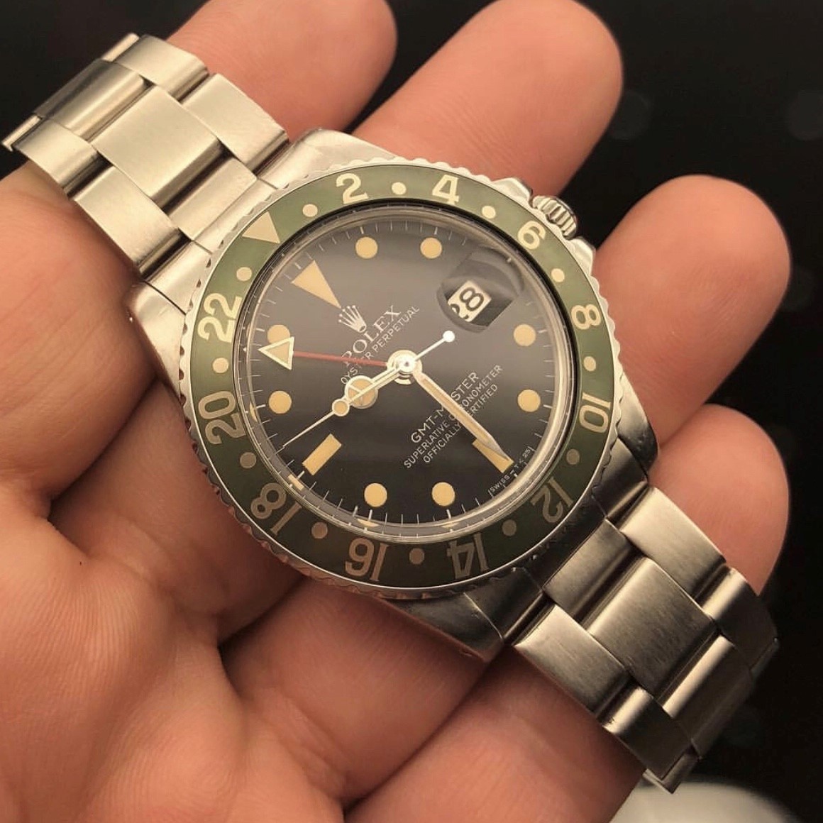 Een originele bakelieten bezel in goede staat is zeer zeldzaam en dit reflecteert in de prijs. In 2014 is er een losse bakelieten bezel in goede staat door Antiquorum geveild voor 32.000 Dollar. Als je de bezel beter inspecteert zie je dat de insert een piece of art is. De rijkheid van de kleuren is opmerkelijk en daarnaast lijkt het alsof de nummers op de insert ‘zweven’ in het bakkeliet. Alsof het er als ware er in ligt. Daarnaast is het font van de nummers ook veel mooier dan het afschuwelijke grote font wat ze op de nieuwe GMT’s gebruiken.
