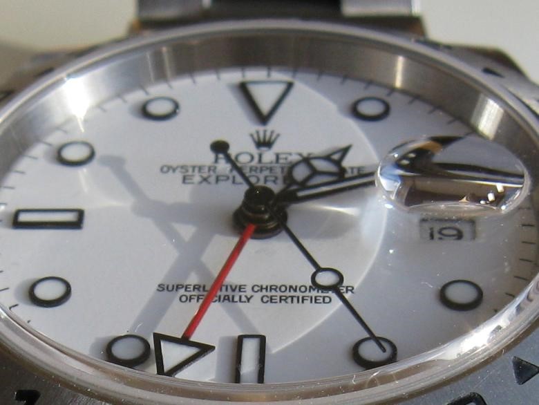 Niet helemaal lekker gelukt maar ik vond de schaduwen wel aardig, en als je goed kijkt zie je zelfs nog iets van het kroontje in het glas. Ik dacht ook dat ik hem nog aardig had gepoetst maar op dit soort foto's kom je toch altijd weer een partij ranzigheden tegen.